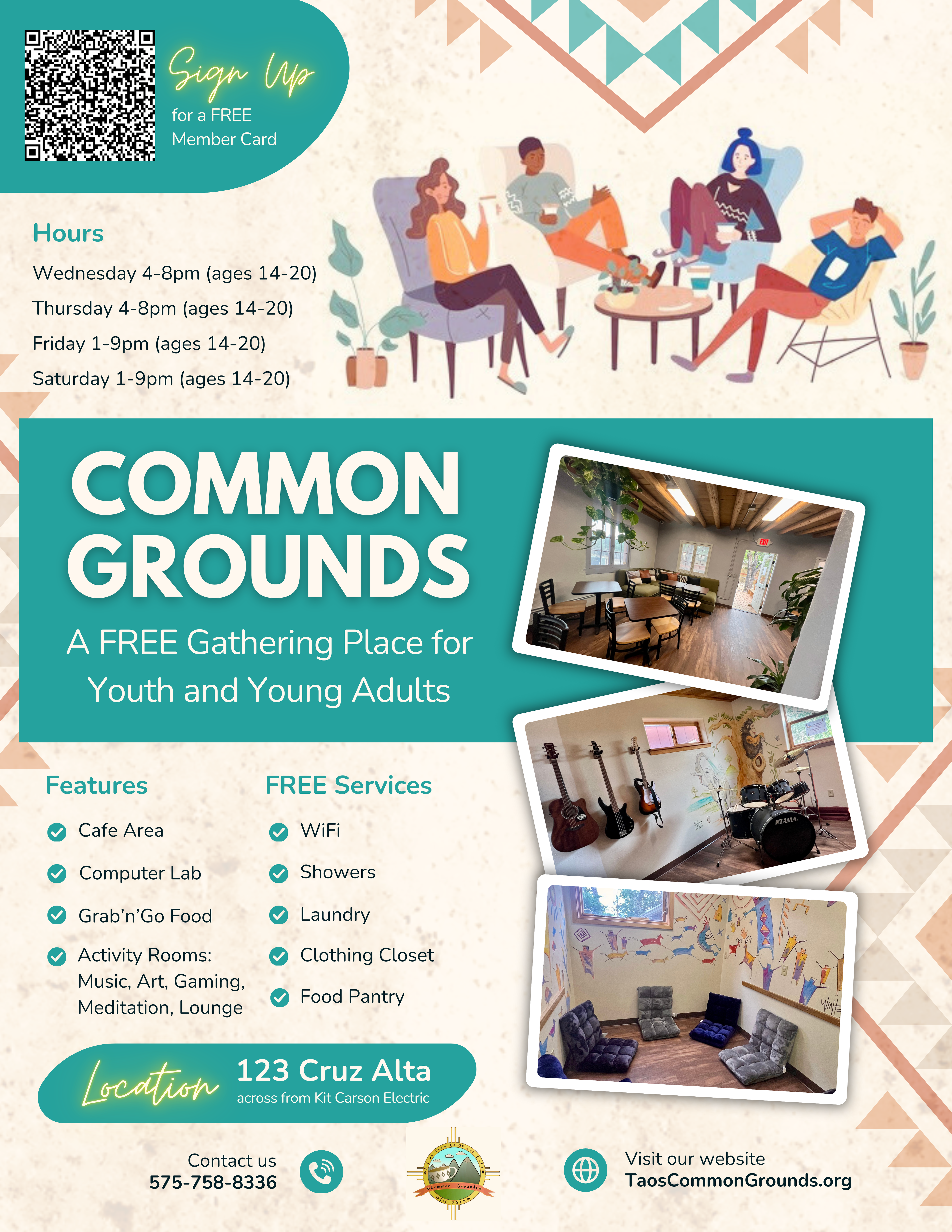 Taos Common Grounds is a safe social space – a gathering place – for youth and young adults ages 14-24.
