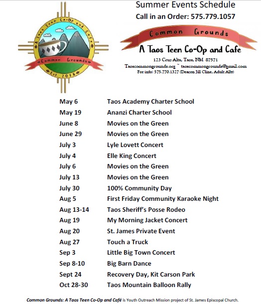 Common Grounds: A Taos Teen Co-Op and Café “went live” with its food truck operations at the Big Barn Dance, Sep 9-11!! (And we may need some logistical help doing it.) We’ve been working for a long time to fundraise for building renovations and start business operations. The hard work has paid off! Teens who initially came together in late 2016, to comfort each other in tragedy, while questioning faith, started living to help each other and others. My prayer for these young folks started all those years ago: “Answer me when I call, my saving God. When troubles hem me [them] in, set me [them] free; take pity on me, hear my prayer.” Psalm 4:2